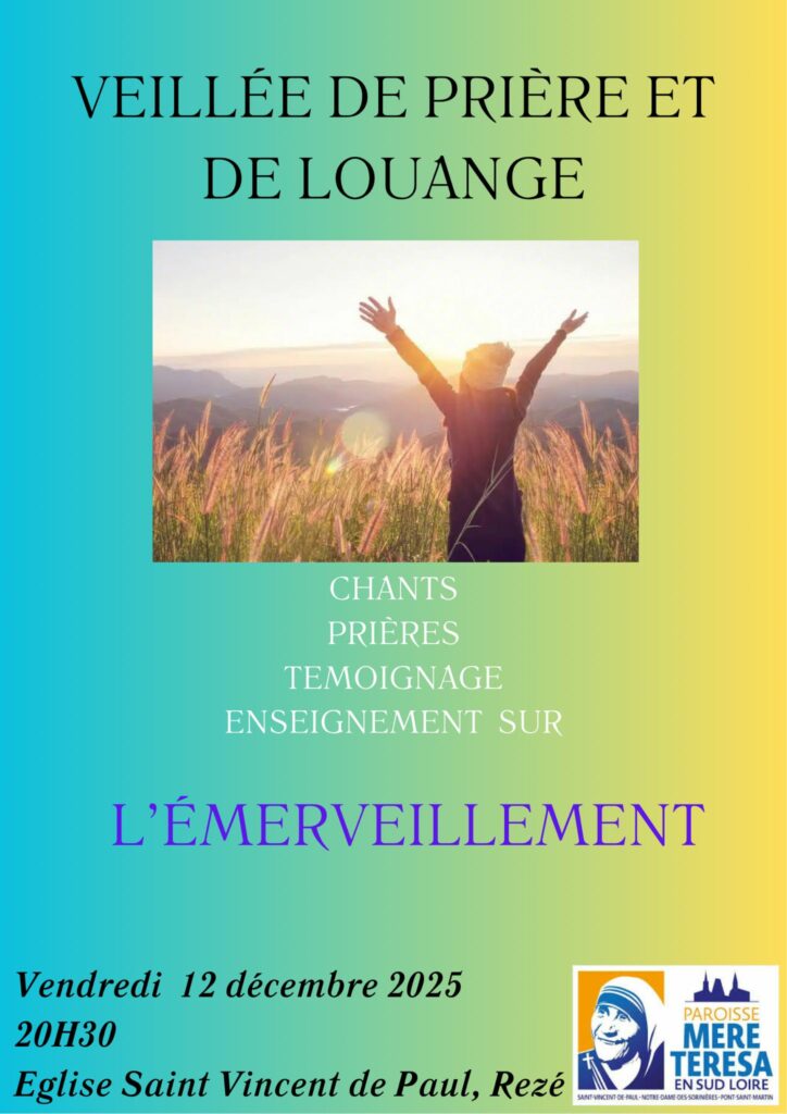 VEILLÉE de PRIÈRE & LOUANGE, Vendredi 12 décembre, 20h30, Saint Vincent de Paul